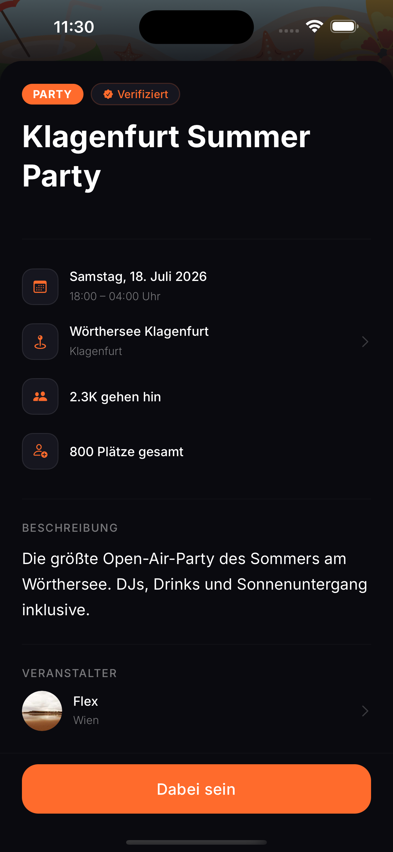 30 Sekunden. Ein Event. Deine Regeln. Trau dich — die anderen warten drauf.